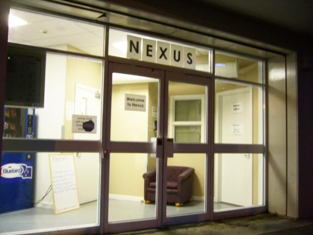 Nexus is half-dorm and half-apartment rooms around a central kitchen, but it has a lot of confusing doors and passageways. Its at the base of the hill on the edge of the valley the city is in, with the campus on the top of the hill. Or mountain. More of a mountain when you have to climb 175 steps straight up to the street over us, then another 50+ depending on the route you take to campus. Plus several steep ramps.