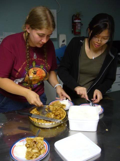 On Thursday Raizel came over and we made french toast then ran a bunch of errands around town. I went to the camera warehouse and got four 2 GB memory cards for Easter break. Later Raizel came over again to make an apple pie with a friend from Malaysia who had never tried it before.